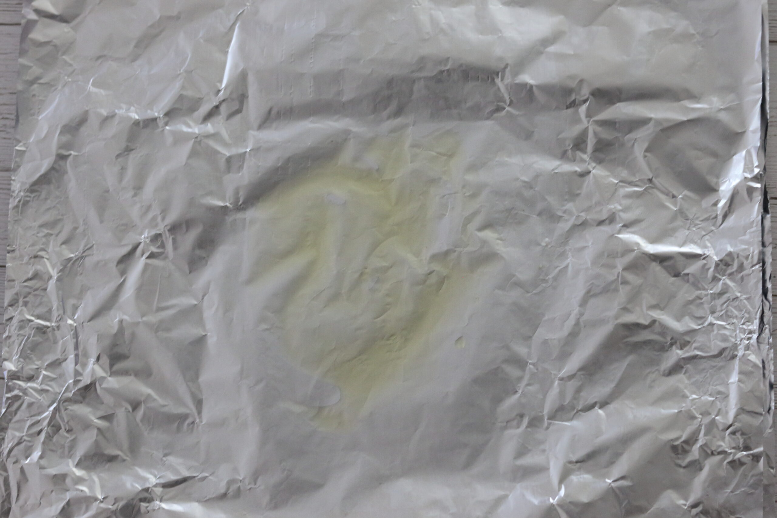 ① アルミホイル1枚で包むのが難しい場合は、2枚重ねて焼くことで破れを防げます。