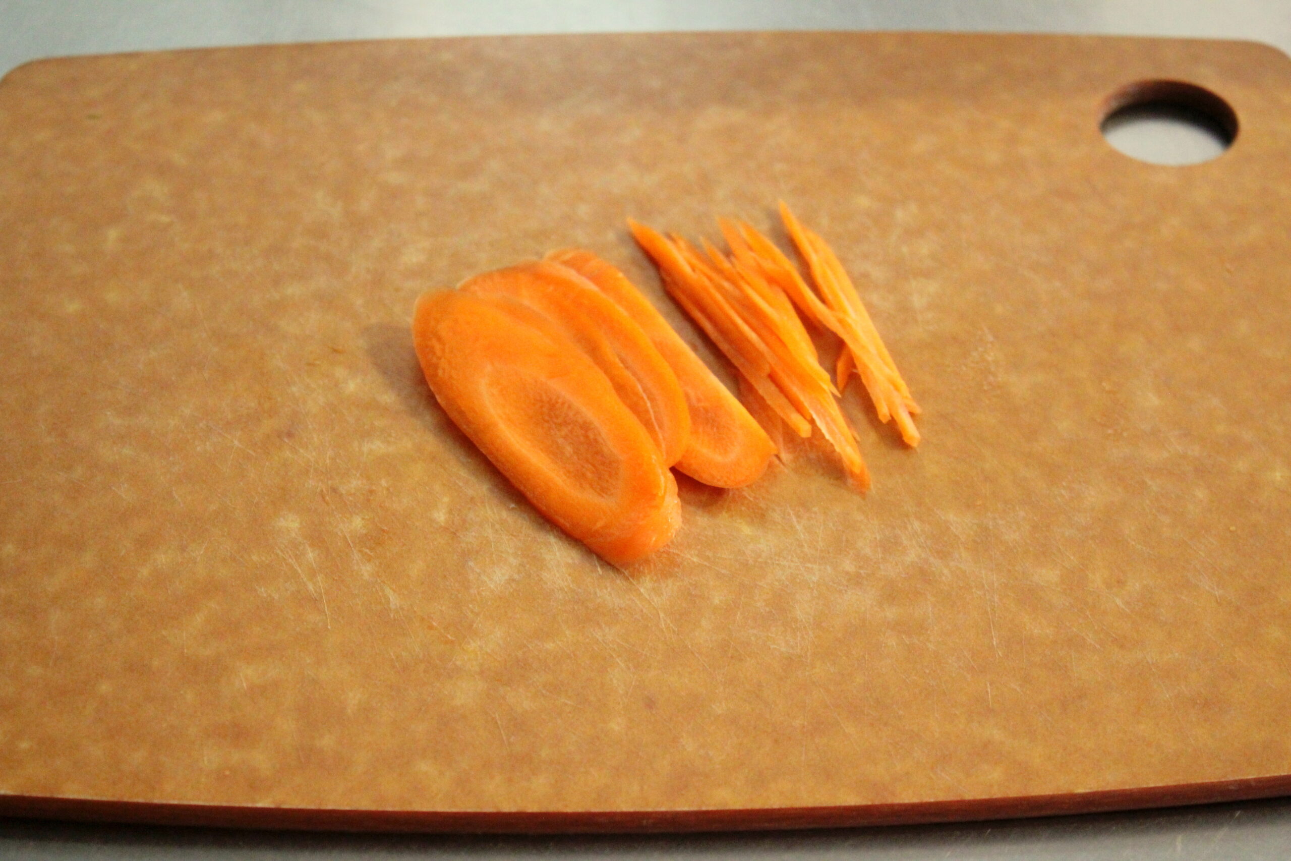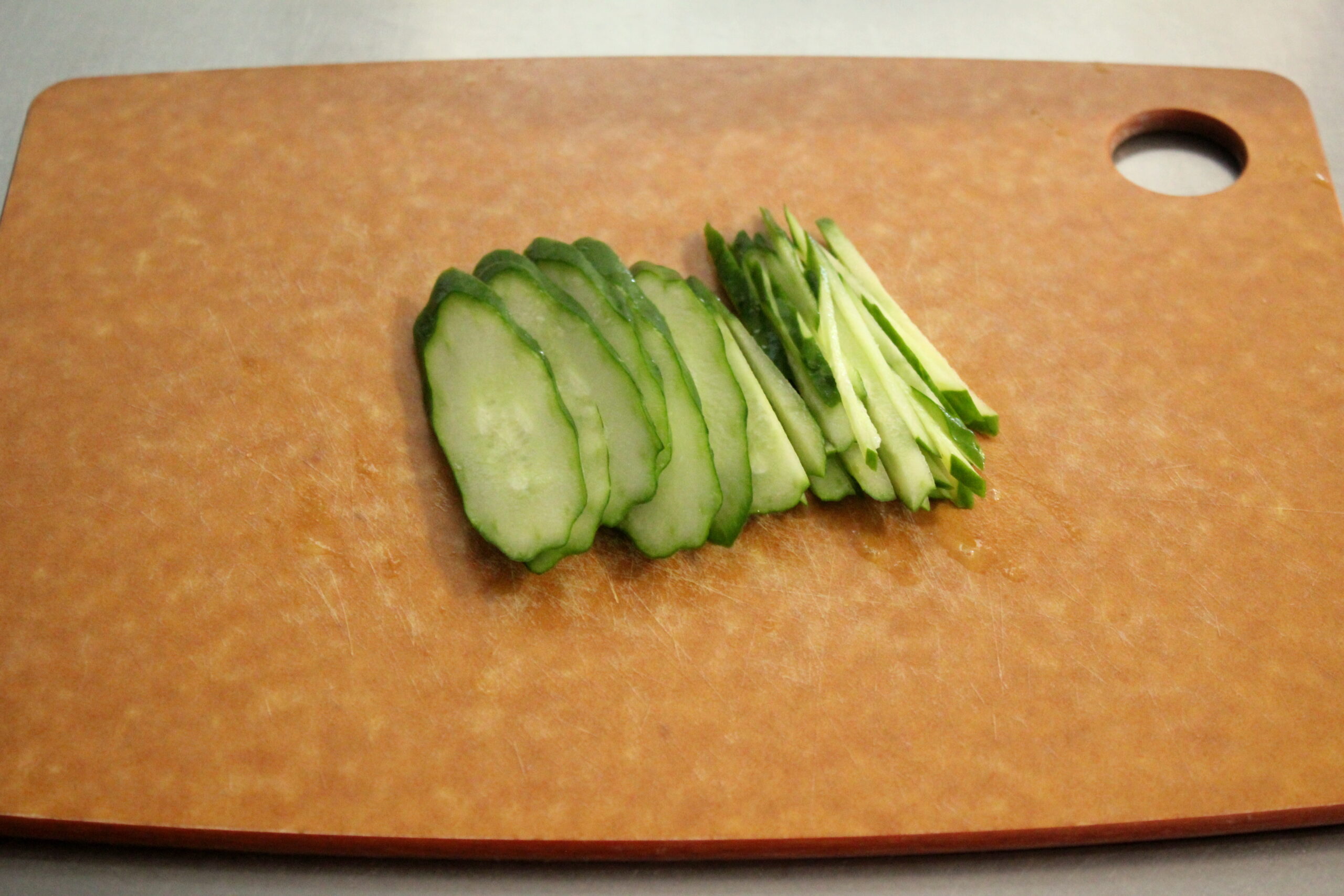 ②きゅうりと人参は千切りにします。
