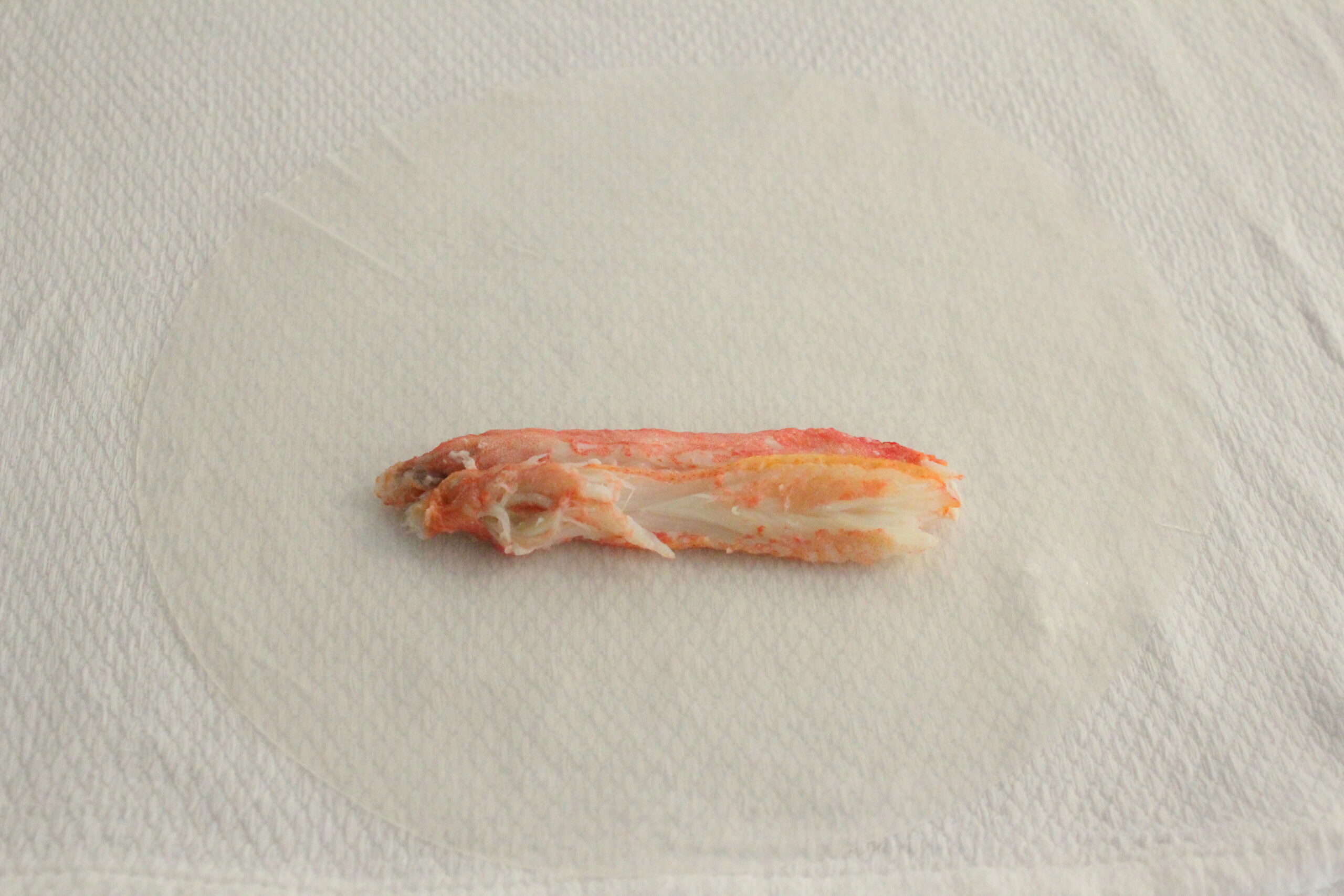 ①訳ありカニ足は解凍し、殻から外しておきます。