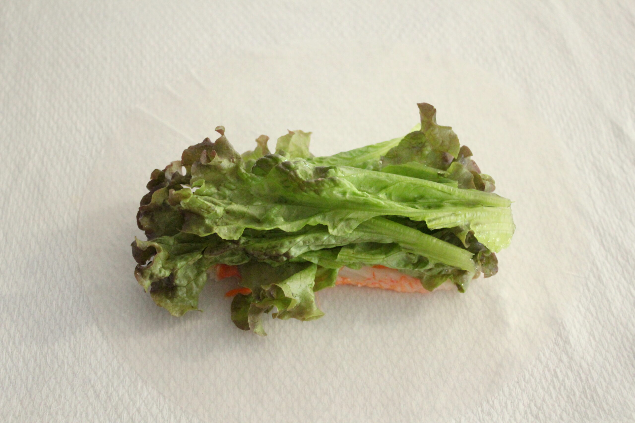 ④サニーレタスは洗ってキッチンペーパーで水分をふいて下さい。